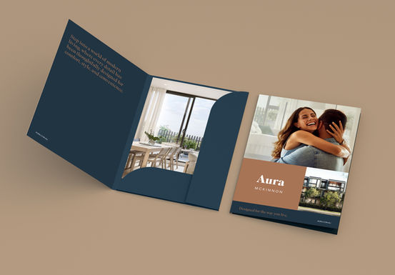 Fynnan Construction enlisted my help to create the visual identity and marketing collateral for their new boutique apartment development, Aura. This exclusive project, featuring only 22 apartments, boasted stunning architecture, breathtaking views, and vibrant surroundings, offering a truly exceptional lifestyle for its fortunate residents.